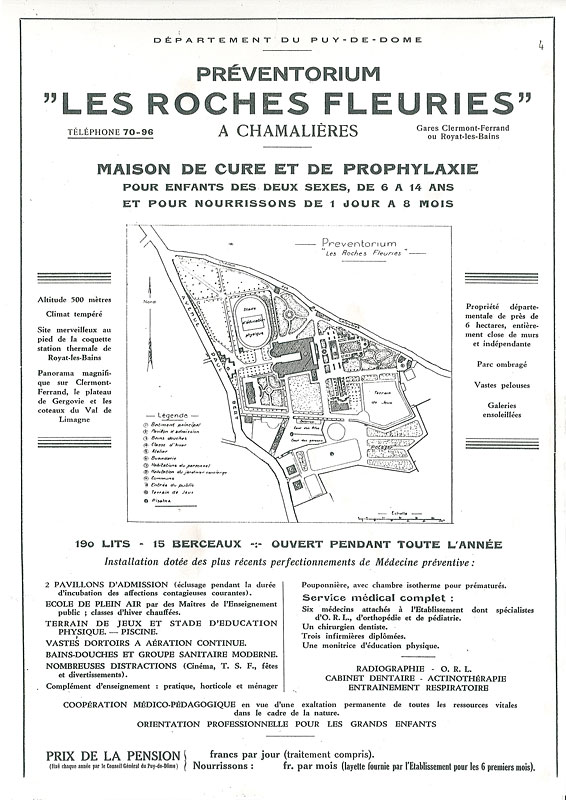 Les années 1930 La plaquette, Préventorium les Roches Fleuries |
